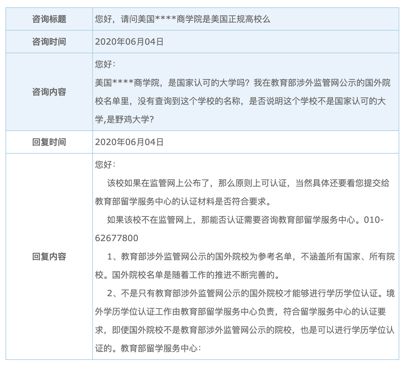中国教育部教育涉外监管网的官方回复 http://jsj.moe.gov.cn/n2/12015/12015/1299.shtml