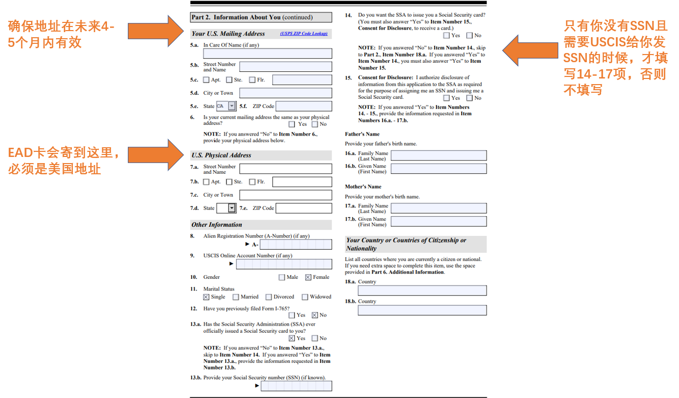 OPT开始日期(OPT start date)和OPT结束日期(OPT end date)是自己选择的,结束日期为开始日期后一个月少一天。例如:OPT 开始日期:2019 年 6 月 15 日,OPT 结束日期:2020 年 6 月 14 日。OPT结束日期一定要在项目完成日期后14个月内,所以如果开始日期写得太晚,那么就会损失一部分OPT时间。