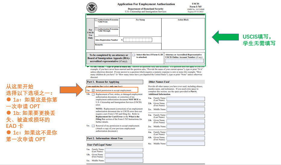 在收到OPT I-20之后,必须在30天内将所有材料提交给USCIS,发起申请。请注意时间,如果在30天之后提交,则会被判定为I-20过期,申请自动deny。