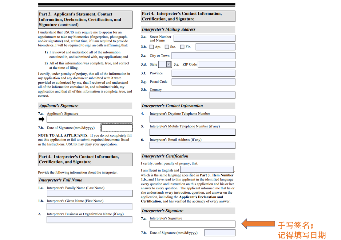 如果第一页Part1选择了 1.a.,则无需填写第六、七页。若需要填写,可以参考以下格式: