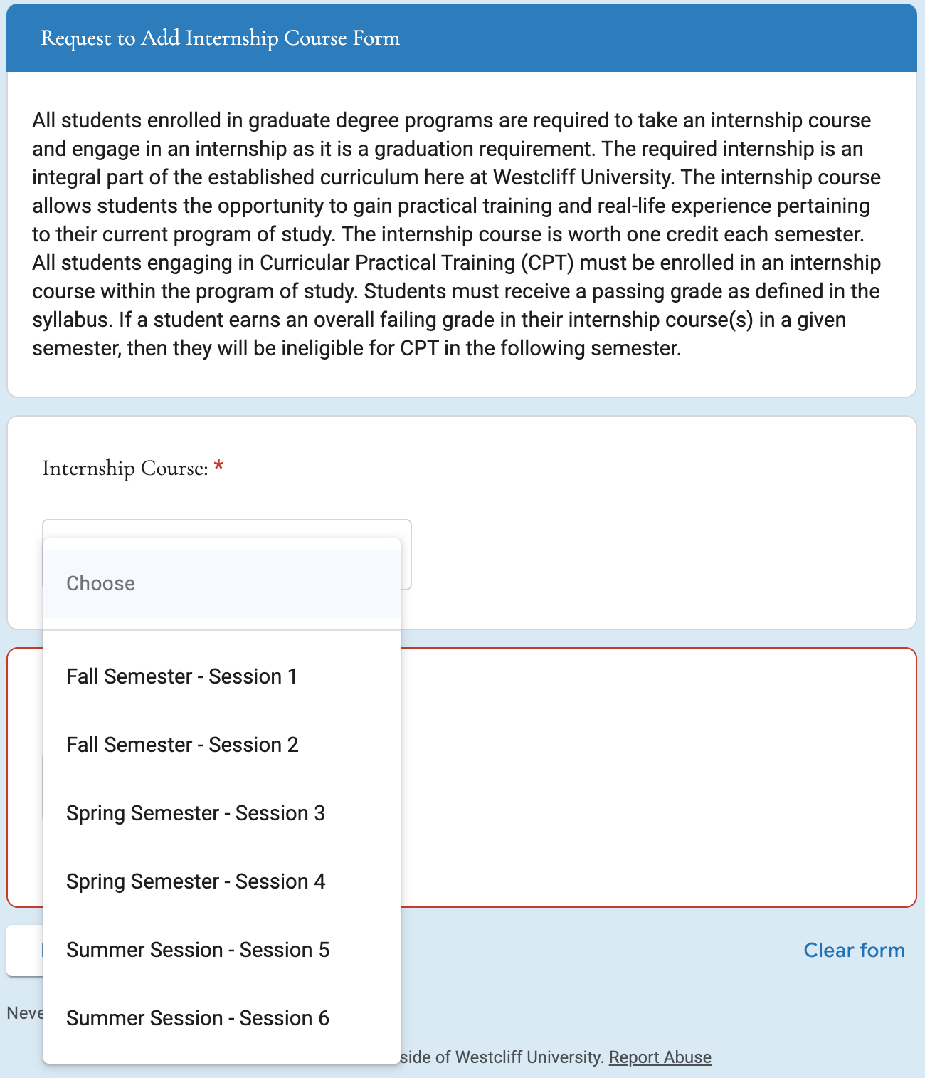 - 注册完之后提交CPT申请,在CPT开始(学期开学日)前的一周左右转SEVIS到Westcliff